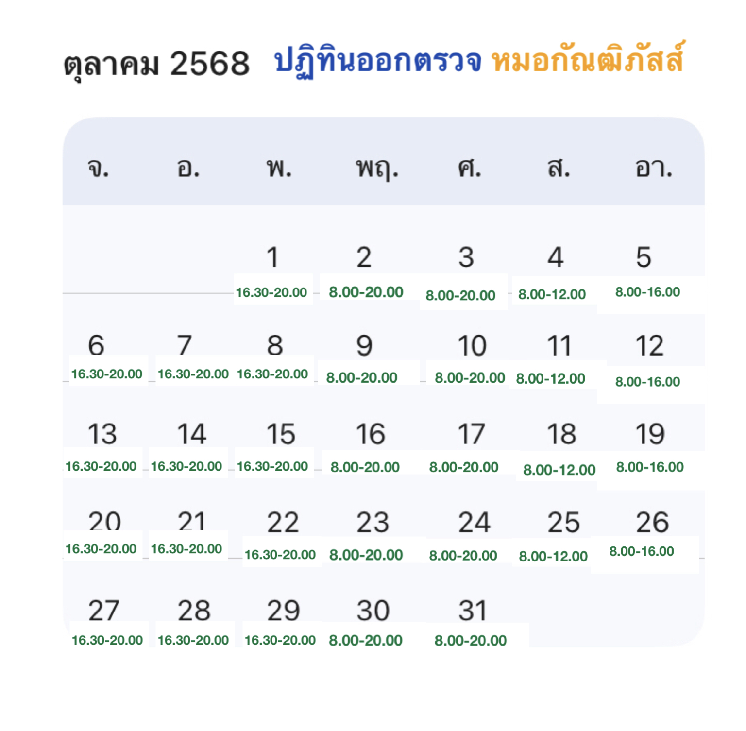 - ตุลาคม ตารางออกตรวจทุกวัน หมอกัณฒิภัสส์ พัทยา2คลินิก เฉพาะทางอายุรกรรม